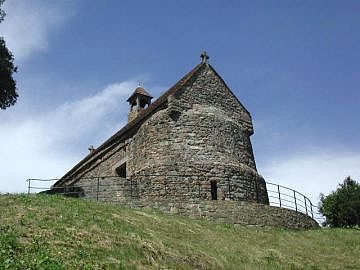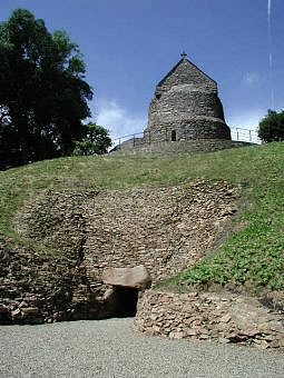 Hougue Bie (pronounced 'hoog bee') Hougue Bie is undoubtedly one of our local treasures. A mound standing 14 metres high covers an important Neolithic tomb dating back to about 3,500BC. A later addition to this important site was the building of a 12th century chapel (shown in the photo below left). |
