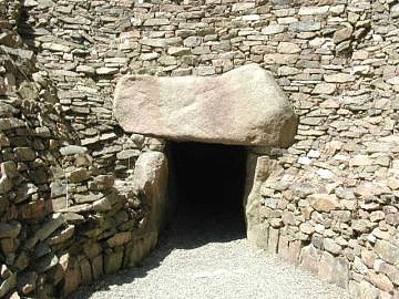 The name of the site is a bit of a puzzle. It's possible that the word 'hougue' is derived from the old Norse 'haugr' meaning a mound. You can read about our Viking connections here. (Press the 'Back' button on your computer to come back here). As far as the word 'Bie' - this may possibly be a shortening of the name 'Hambye'. A legend connected to this site suggests that the Lord of Hambye in Normandy may have been buried here. You can read about Hambye the dragon slayer by clicking here.We know that the Neolithic people were not very much smaller than us and yet the entrance passage (above right) is low. One theory is that it was deliberately constructed this way in order to make people stoop in reverence as they entered this important tomb. |