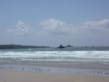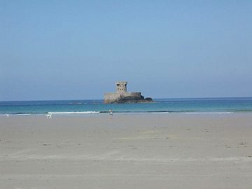 There seems to be a particular etiquette towards the use of the bay and the many boogie boarders tend to congregate in front of Le Braye slipway. Above is a picture of La Rocco tower, which sits just in front of the slipway. This tower is another example of our many fortifications against French invasion and is accessible on foot at low tide. The enormous difference between our high and low tides is very noticeable at St. Ouens. On a particularly high tide, waves can crash right over the sea wall and into the road, and our old sea defences struggle to remain intact. Conversely, at low tide, enormous expanses of firm golden sand are exposed. |