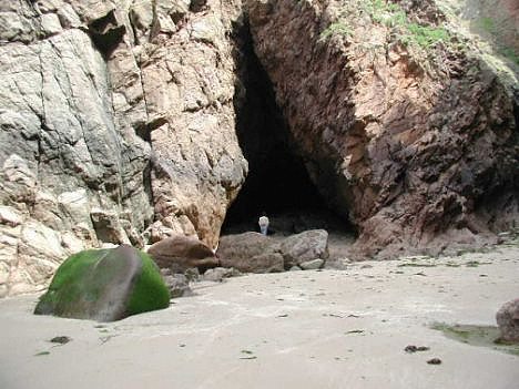 You will find the usual cafe and toilets at the top of the steep steps, and the bay is certainly popular as a place to spend a day by the water. For me, however, the appeal lies very much in the scenery. Lifeguards are on duty and a bell warns of the incoming tide. This is definitely not a place to be left stranded. A walk up into some of the gullies and caves serves as a reminder of the huge power of the ocean. |