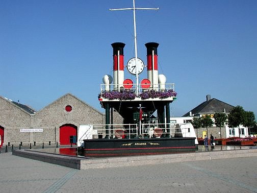 To this day locals regard it with some disdain, referring to it as 'The Bubble Clock'. Every hour, on the hour, the great paddles turn, the waters beneath the clock start to bubble and steam emits from the twin funnels. Sadly the negative press at its inception means that many islanders do not realise is that this is really a monument to an important part of our maritime history. The original 'Ariadne' was one of the first steam ships to sail between England and the Channel Islands. (Read more about this here).If you are visiting the Maritime Museum, the Steam Clock is just to the rear of the building and is worth the few minutes detour it will take to get there. |