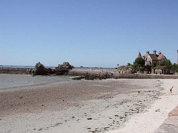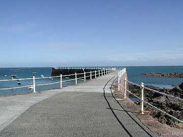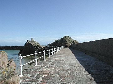 The charming little pier that protects the small number of fishing boats at La Rocque provides a good vantagepoint northwards towards Gorey and southwest towards Le Hocq. |