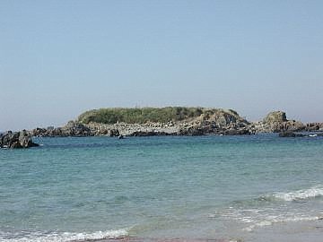 All around the island are reminders of past inhabitants dating back to prehistoric times, and Green Island is no exception. This is an important archaeological site as 18 box-like graves (some still with human remains) were discovered on top of this mound dating back to neolithic times. Sadly now coastal erosion threatens the very existence of this local landmark. The photo above right shows the section of the beach to the right of the slipway. |