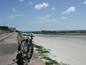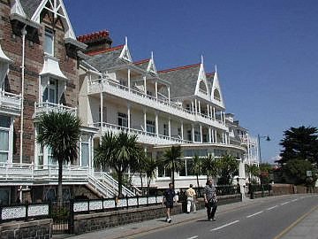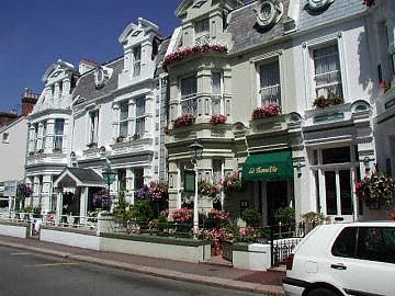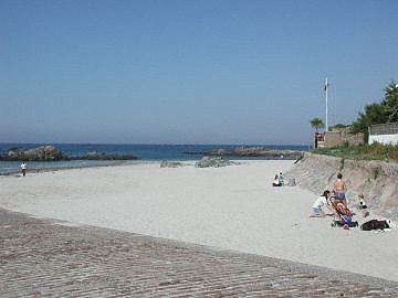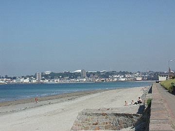 Moving around the coastline, westwards is the popular Victorian seaside resort known as Havre des Pas. On the left is the Ommaroo Hotel, which sits just across the road from the beach. The architecture of this building is very typical of the area - many of the houses having finely decorated balconies. The area just along the road from here was a favourite haunt of Victor Hugo and other political refugees to spend their time in deep discussion. A plaque at Le Dicq commemorates the spot where they would meet. |